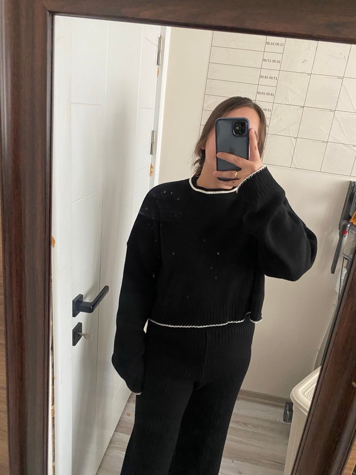 Siyah Minimalist Kadın Triko ALT ÜST TAKIM