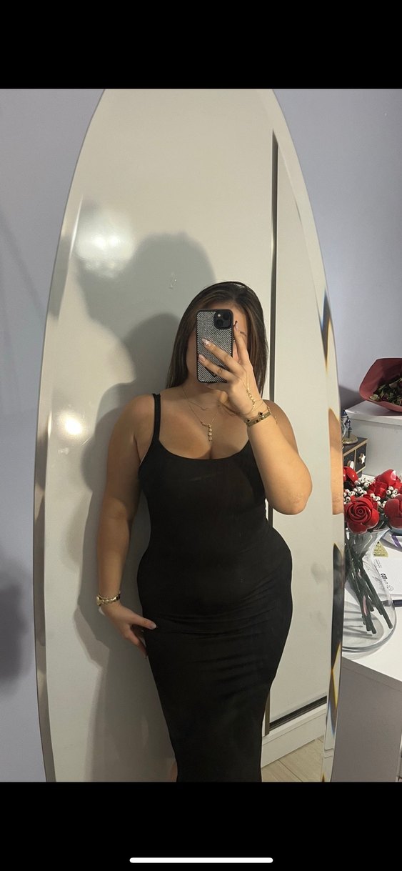 Siyah ve desen içermeyen bu kadın vücut saran yanında minik bir yırtmaç arkasında ise sırt detayı bulunan bir şık ve günlük elbise bedeni M
