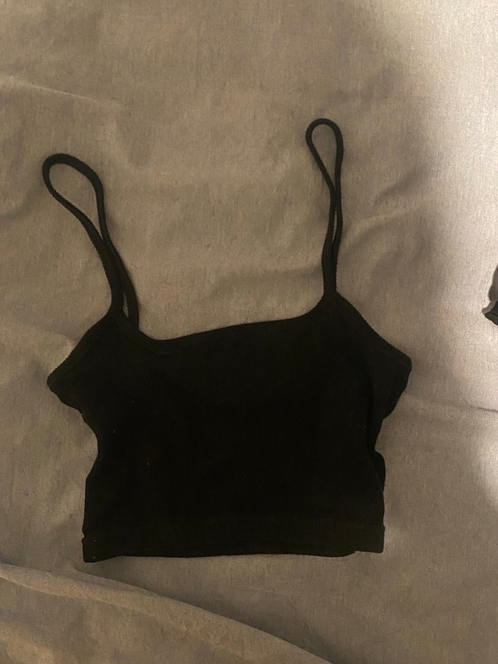 İnce askılı, desensiz ve minimalist tasarımlı siyah midi crop