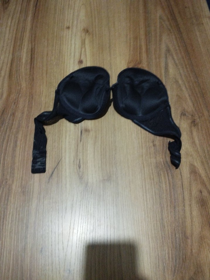 Siyah, desen içermeyen, minimalist ve midi uzunlukta sütyen, karşı kültür tarzına uygun koyu renktedir. siyah sütyen. 85 beden askısı yok takmanız lazım destekli sütyen