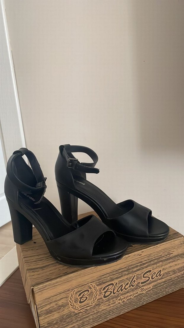 Siyah topuklu, minimalist goth tarzda kadın ayakkabısı. Tokalı kayışları ve kauçuk malzemesiyle cesur romantik buluşmalar için uygun.