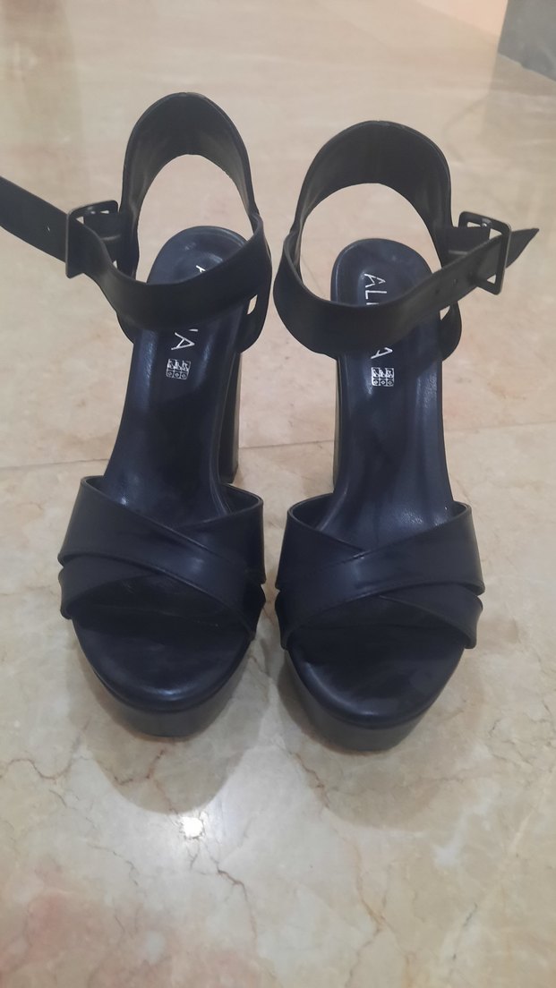 Siyah, tokalı bantlı, kauçuk malzemeden platform topuklu kadın ayakkabısı. Minimalist ve gotik tarzda, romantik akşamlar için uygun. topuk boyu 13cm