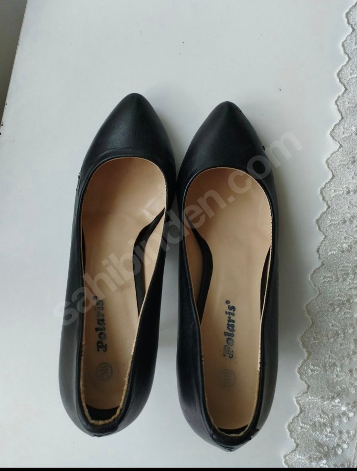 Siyah, minimalist, düz ve desensiz lastik malzemeden yapılmış stiletto topuklu kadın ayakkabısı, ofis kullanımı için uygun, zahmetsiz şıklık sunar.