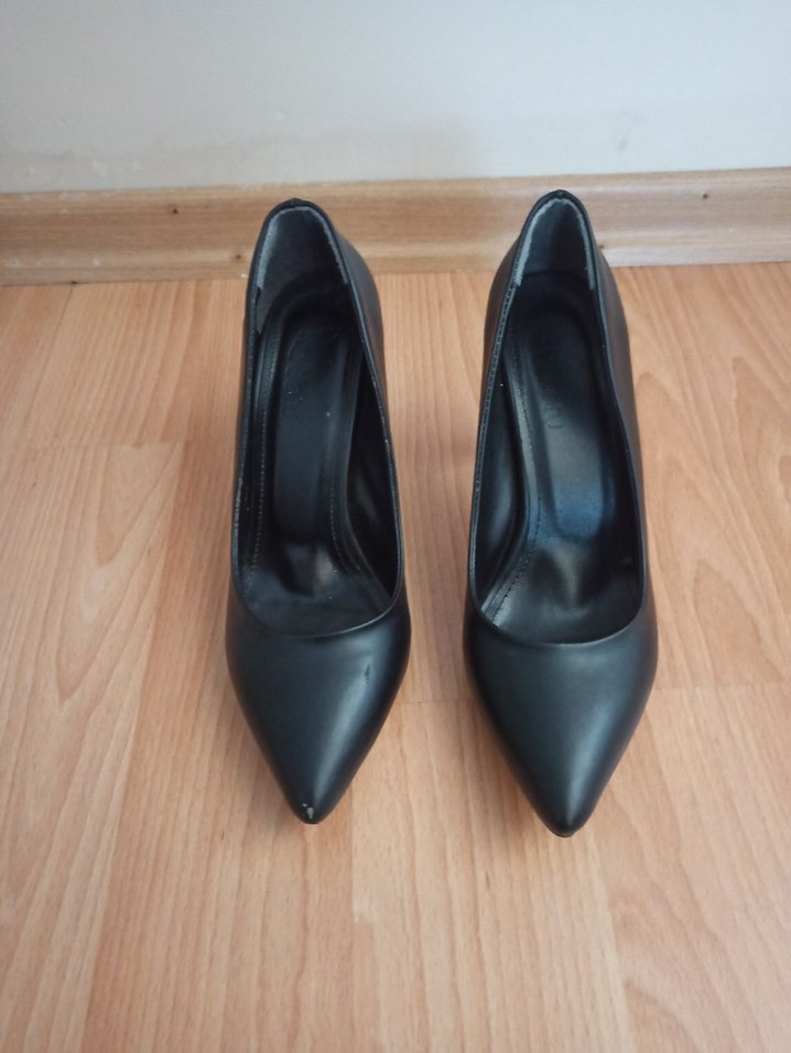Siyah minimalist stilettolar, sivri burun ve pürüzsüz yüzey ile ofis için klasik gotik dokunuşu sunar. Dayanıklı kauçuk malzemeden yapılmıştır.