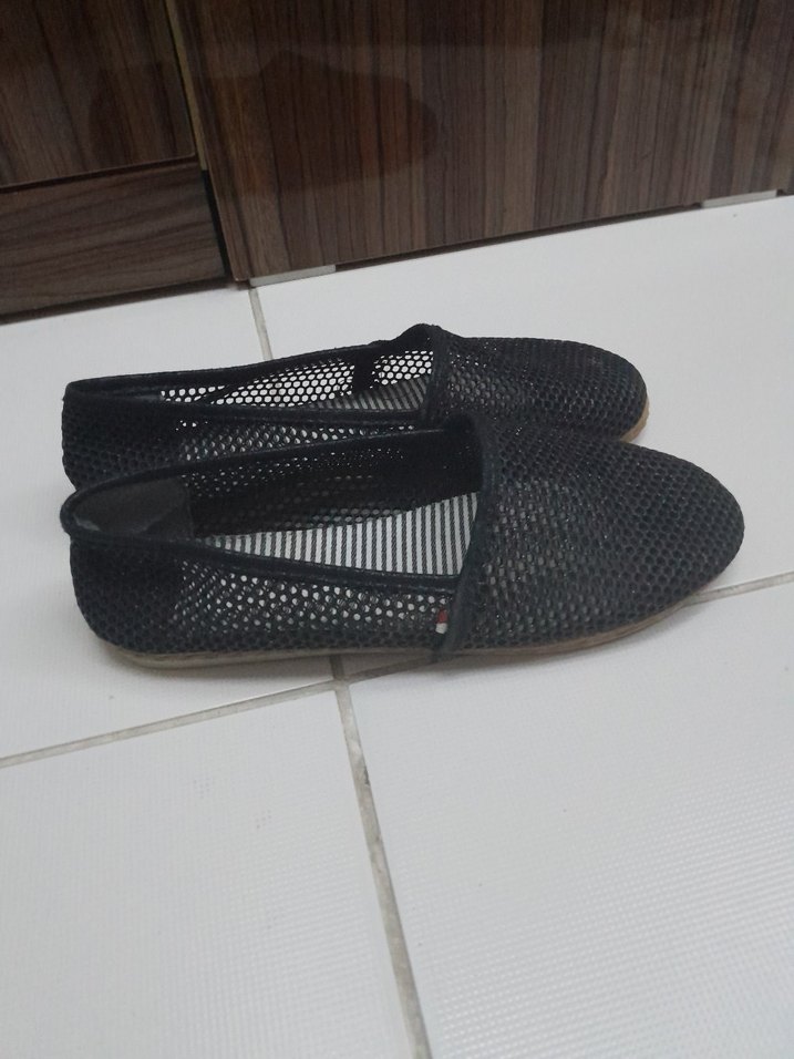 Siyah minimalist kadın espadril, stiletto topuklu ve elastik yan detaylı, kauçuk malzemeden üretilmiş, günlük sokak stili için uygundur.
