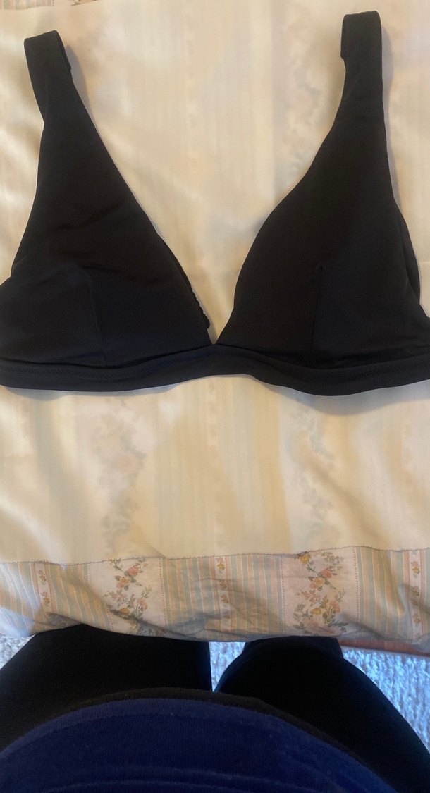 Bu siyah bikini üstü, strappy askılar ve minimalist tasarımıyla cesur ve zahmetsiz şıklık sunar.