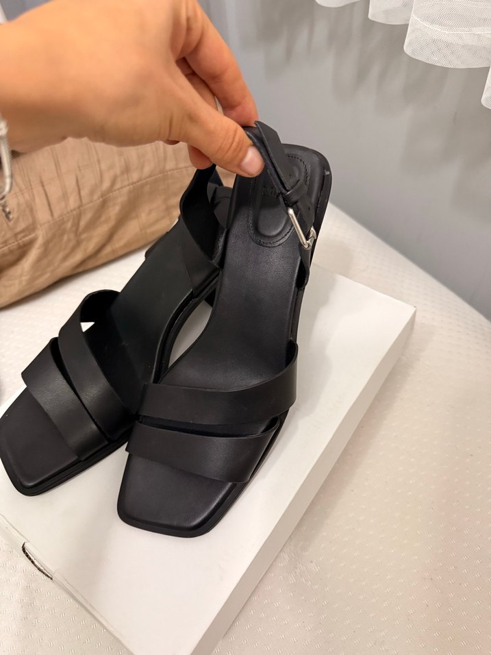 Siyah Minimalist Tokalı Stiletto Kadın Sandalet