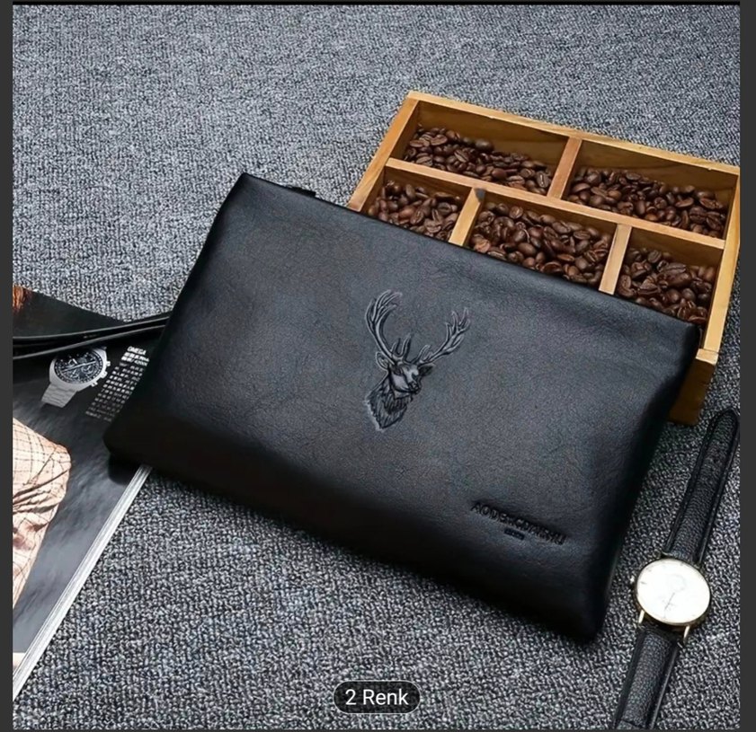MOEPEQDAISHU Erkekler için Siyah Sentetik Deri Kavanoz Çanta Kabartmalı Geyik Başlı Tasarımıyla - Şık İş El Çantası, Uzun Cüzdan ve Günlük Seyahat İçin iPad Tutucu