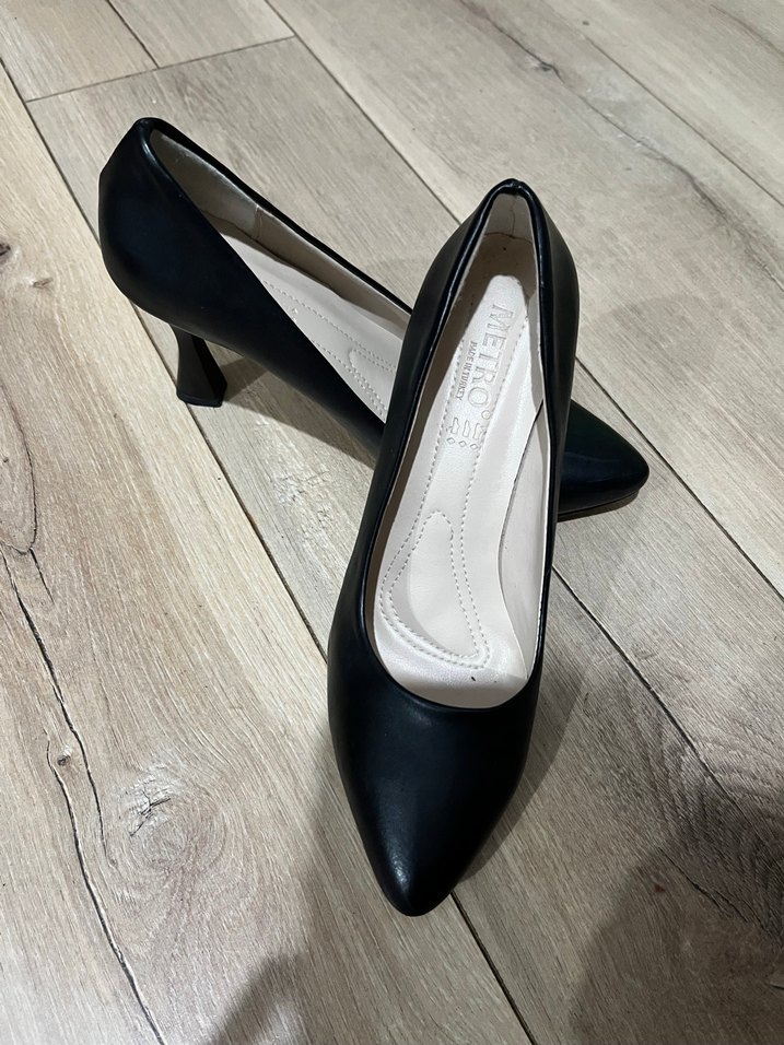 Siyah, modern klasik stilettolar kauçuk tabanlı, desen içermeyen şık tasarımla ofis kullanımına uygun. Klasik zarafet ve zahmetsiz şıklık sunar.