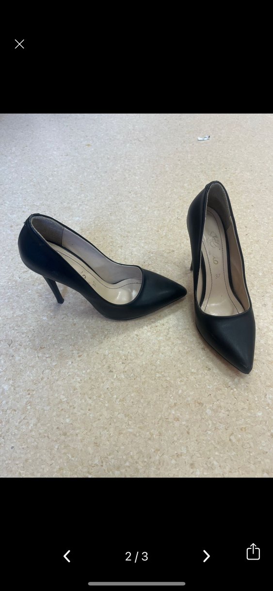 Siyah, kauçuk malzemeden yapılmış modern klasik tasarımlı stiletto topuklu ayakkabılar. Desensiz ve ofis için uygun, zahmetsiz şıklık sunar.