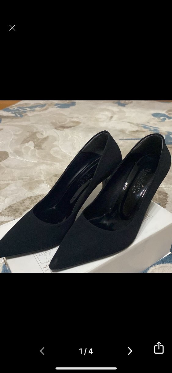 Siyah renkli, modern klasik tarzda, lastik malzemeden yapılmış, ince stiletto topuklu kadın ayakkabısı. Ofis kullanımı için uygun, zahmetsiz şıklık sunar.