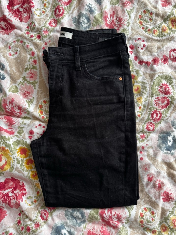 Siyah, MOM jean , normal boy kot pantolon. Günlük kullanıma uygun, rahat ve şık normcore tarzı. Telefon ışığından öyle görünüyor rengi soluk değil