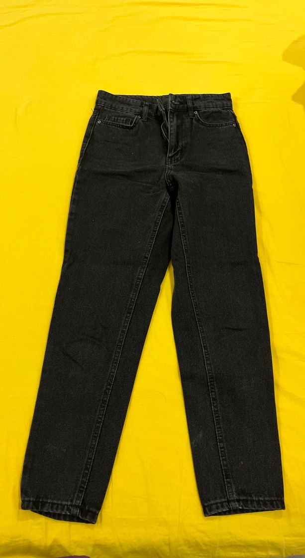 Siyah midi boy, regular fit kot pantolon. Rahat ve şık, günlük kullanıma uygun grunge punk tarzı için ideal.