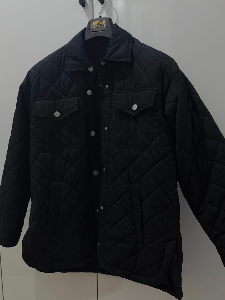 Siyah Kapitone Desenli Düğmeli Mont. Kapitone dikislere sahip, önden düğmeli siyah mont. Göğüs kısmında iki adet çıtçıtlı kapaklı cep bulunuyor. 1-2 defa giyildi. Temiz ve defosuzdur. Yeni ürün denilebilecek kadar temizdir.Hem spor hem günlük kombinlere uyum saglar.Xs-S uyumludur.