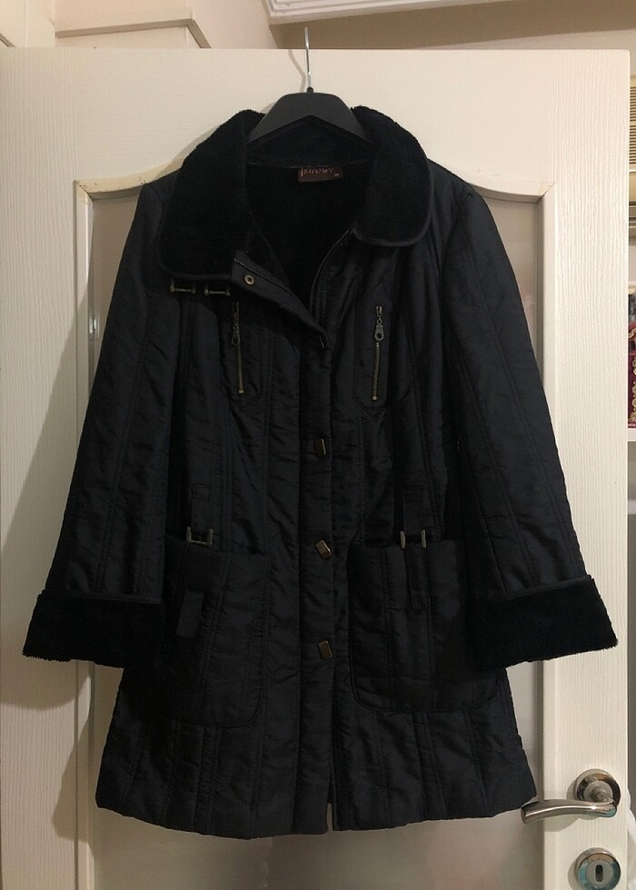 Showy marka siyah renk,içi kürklü mont. Kolun uzunluğu 60 cm.Katlanınca 56 cm. Montun bedeni 38. Montun uzunluğu 80 cm. Yurtdışından hediye geldi. Çok iyi durumda,defosu yoktur.
