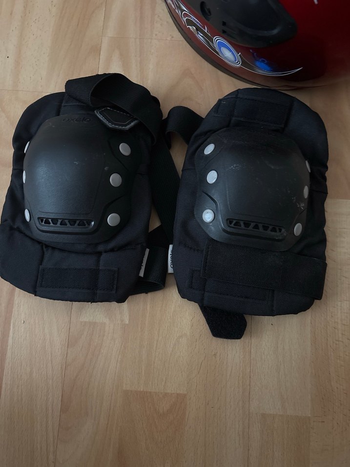 Velcro bantlı, kauçuk malzemeden siyah motosiklet diz koruyucuları. Biker tarzı, desensiz ve sade tasarım. ️ Ve kask