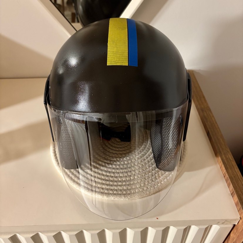 Siyah, açık vizörlü motosiklet kaskı, trend belirleyiciler için tasarlanmıştır. ✨