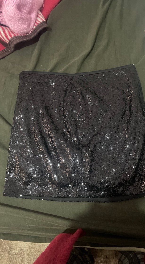 Sentetik kumaştan, parlak detaylı siyah mini etek. Parti için uygun, şık ve sokak stili havasında. ✨
