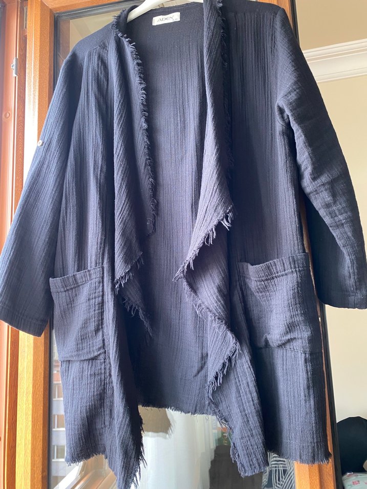 Drapeli ve kesik yaka detaylıdır. Uzun kollu, bol ve uzun kesimiyle bohem ve günlük giyime uygundur.