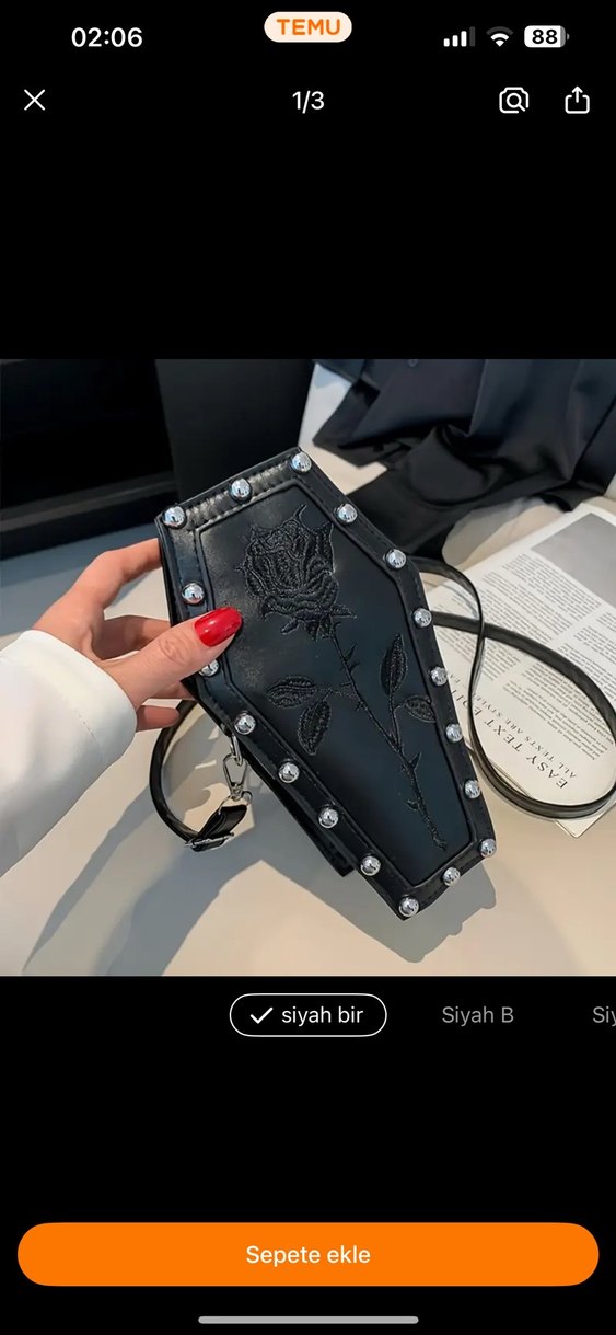 Siyah Nakışlı Deri Gotik Kadın Çanta tabut model çanta