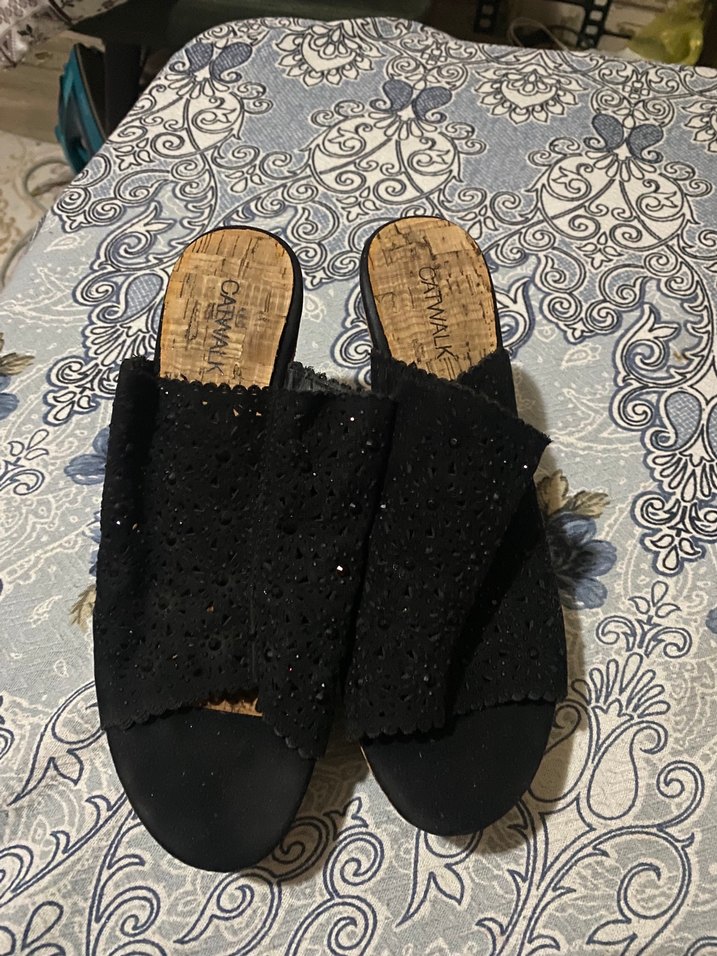 Siyah Nakışlı Dolgu Topuk Kadın Terlik