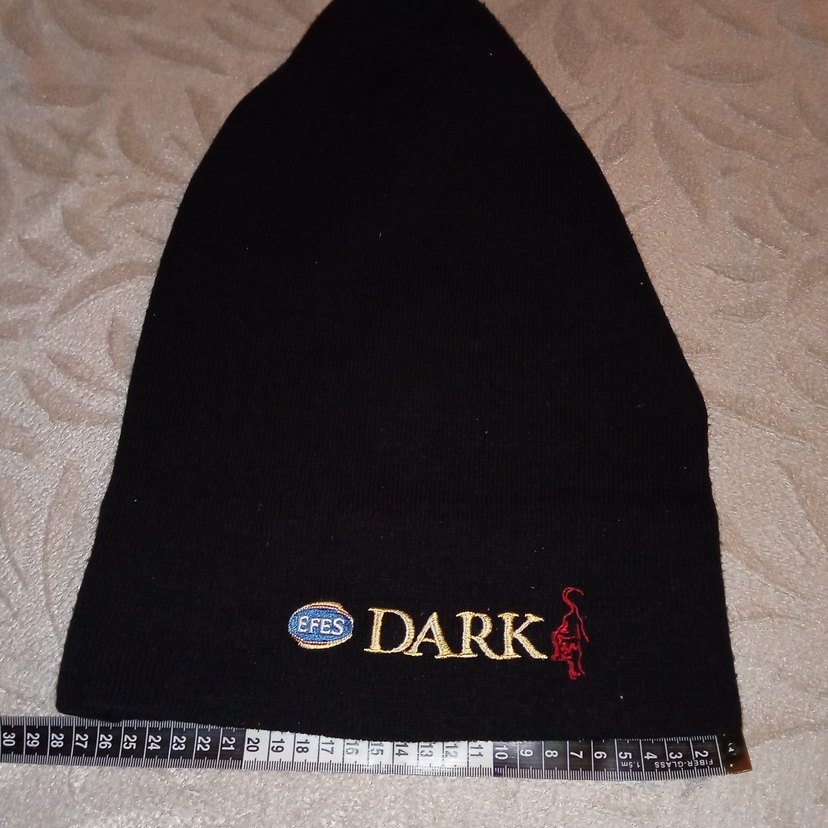 Nakışlı 'DARK' yazısı ve küçük logo detaylı siyah erkek bere. Gotik tarzda, yumuşak ve sıcak tutan kumaşla üretilmiştir.