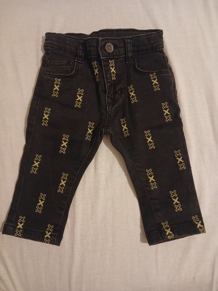 Siyah Nakışlı Erkek Çocuk Kot Pantolon