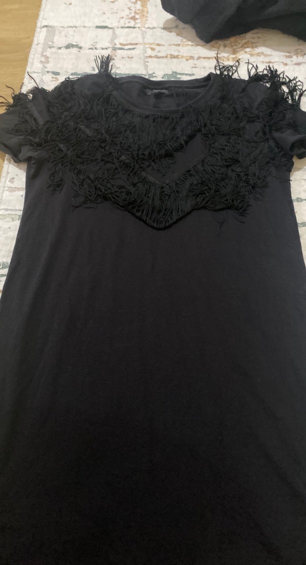 Siyah Nakışlı Fırfırlı tshirt tünik
