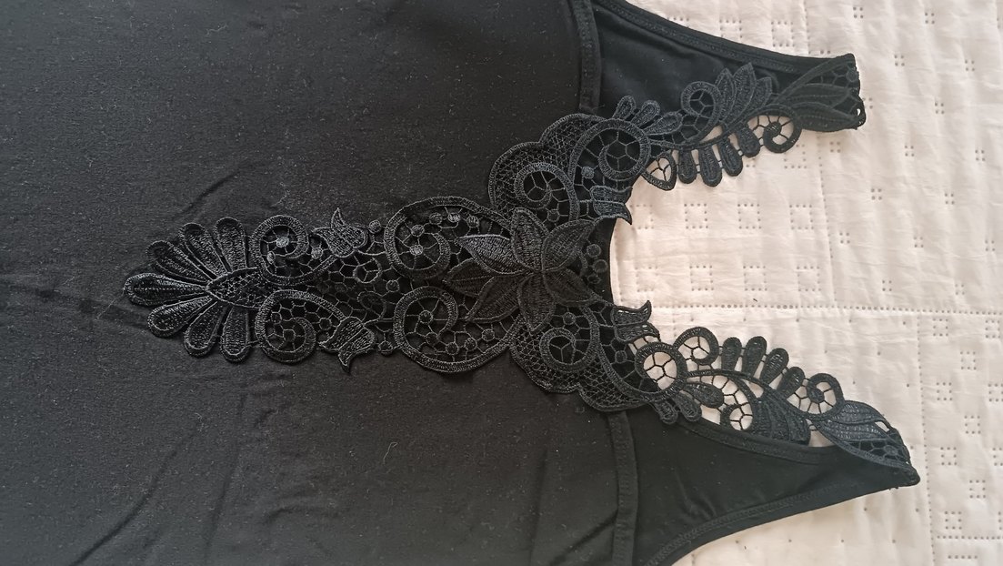 Siyah nakışlı çiçek desenli dantel detaylı, uzun kesim gotik tarzda kadın bralet. aklet