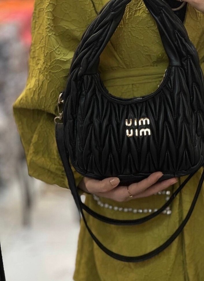 Nakışlı detaylara ve kemerli tasarıma sahip siyah kadın çantası, günlük sokak modası için uygundur. logo kabartmalıdır.