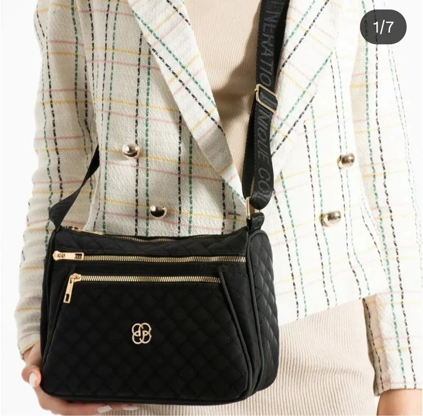 Siyah nakışlı, fermuarlı ve sentetik kumaştan yapılmış çapraz çanta. Paris tarzı ve günlük şıklık için uygun.