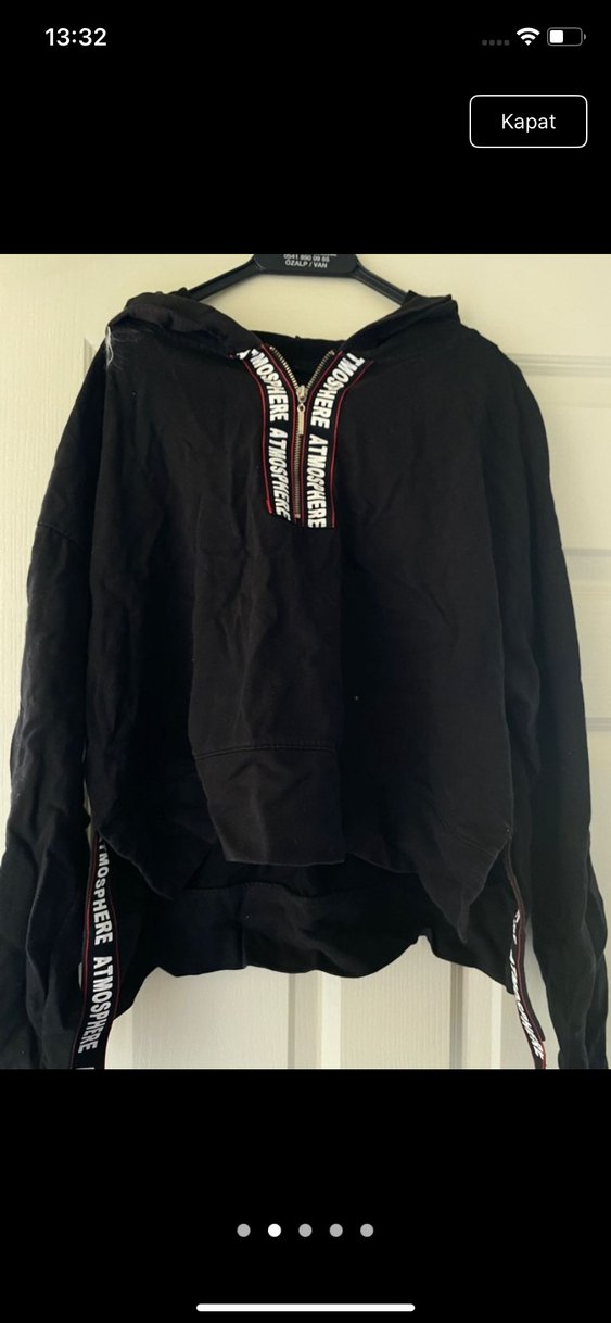 Siyah renkli, uzun kollu ve yüksek yakalı, bol kesim midi uzunlukta spor sweatshirt. Fermuarlı ve nakış detayları bulunur, trend spor tarz için uygun.