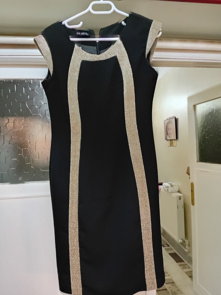 Bir kez giyildi 42 beden nakış detaylı ve kemerli siyah uzun elbise, modern klasik tarz sunar. ✨