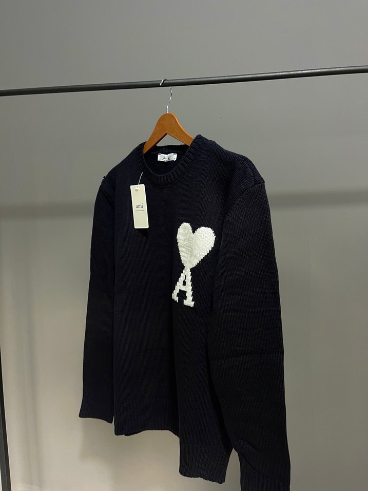 Tüm bedenleri mevcuttur Bu siyah örgü kazak, yuvarlak yaka ve uzun kollu olup bol kesimdir. Nakışlı kalp ve harf detayıyla rahat sokak stili için uygundur.