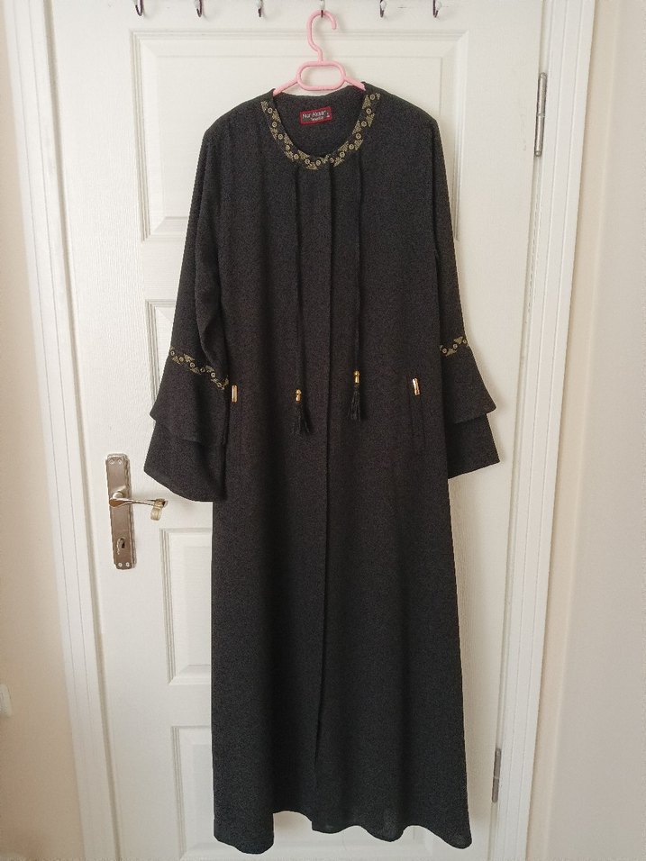 Siyah nakış detaylı ve püsküllü ferace. kaliteli kumaş, birkaç defa giyildi. 42 bedene uyar.