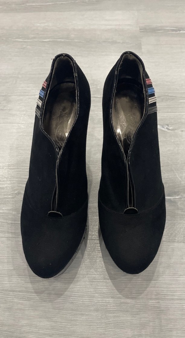 Siyah renkte, nakış detaylı ve fermuarlı, kauçuk malzemeden yapılmış stiletto topuklu kadın botları. Günlük kullanıma uygun çok hafif topuklarında soyulmalar var başka bir sıkıntısı yok