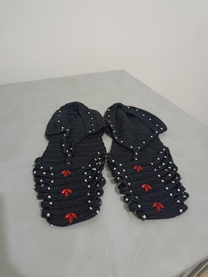 Nakışlı detaylara sahip siyah triko terlik, rahat triko dokusunu günlük kullanım için şık ve trend bir tarzla buluşturuyor. Sıfır ürün ✅