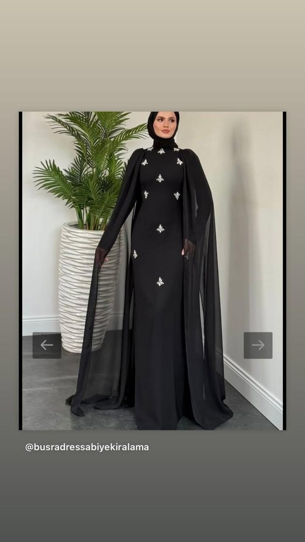 Siyah renkte, yüksek yakalı ve uzun kollu, nakış detaylı uzun goth abiye elbisedir. Dökümlü kumaş ve regular fit ile düğün için uygundur. k. ı. r. a. l. ı. k. t. ı. r 38-44 beden aralığında şal dahildir