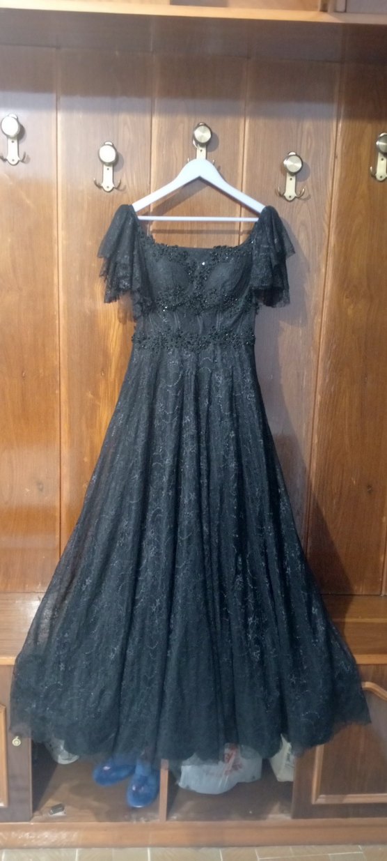 Siyah Nakışlı Uzun Gotik Abiye Elbise söz nişan için uygun