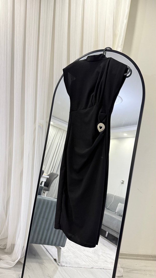 Siyah Nakışlı Uzun Kadın Elbise