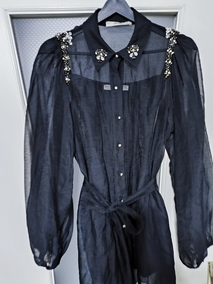 Siyah, Nakışlı , Uzun Kollu , abiye Bluz