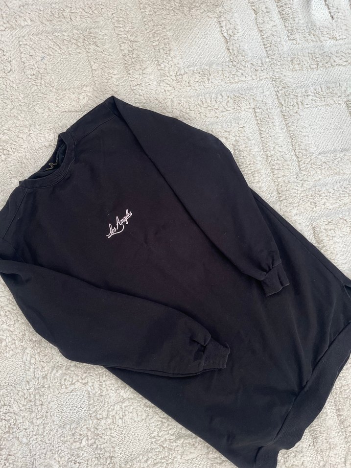 Siyah renk, uzun kollu, yuvarlak yakalı ve salaş kesimli bu sweatshirt, nakış detayları ve yumuşak dokusuyla rahat bir sokak stili sunar. S/M/L beden uyumlu tunik