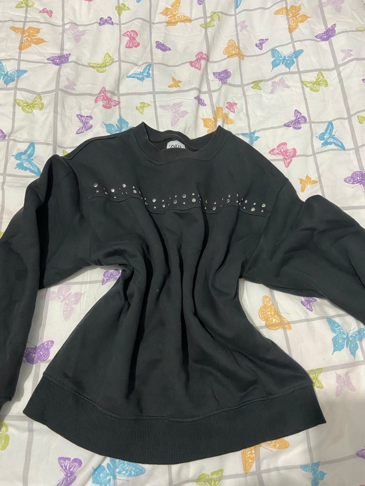 Siyah Nakışlı ve Payetli Kadın Sweatshirt