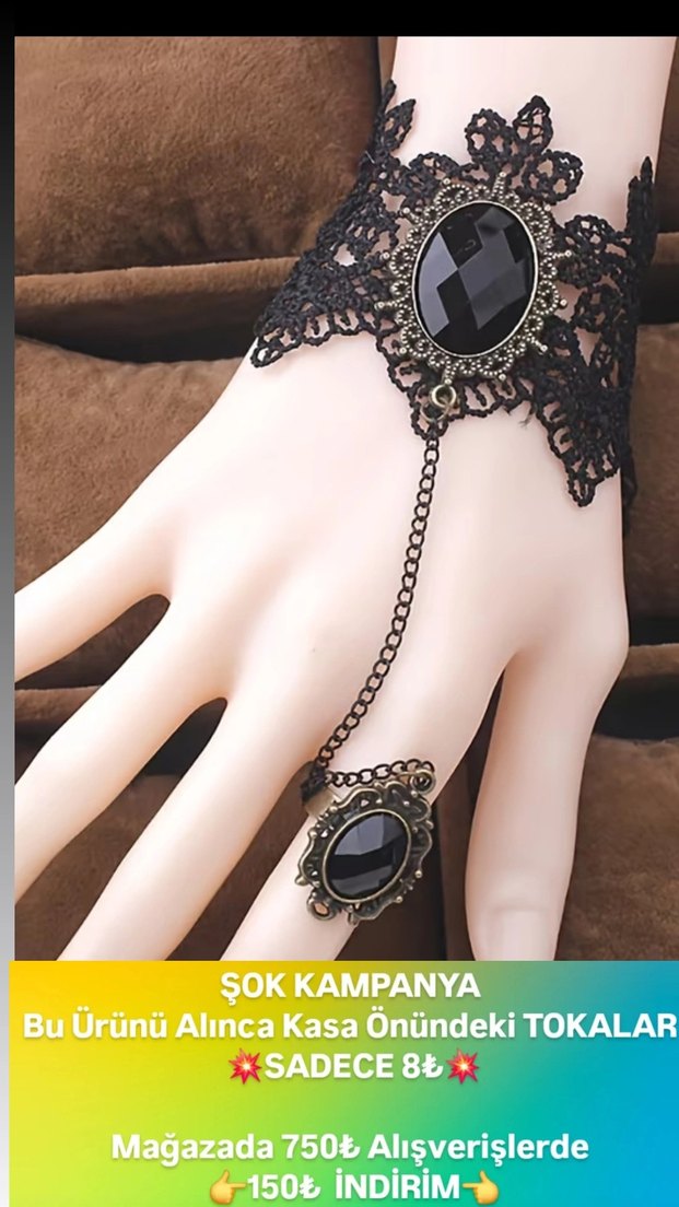 Siyah Nakışlı Zincir Detaylı Gotik Kadın El Zinciri
