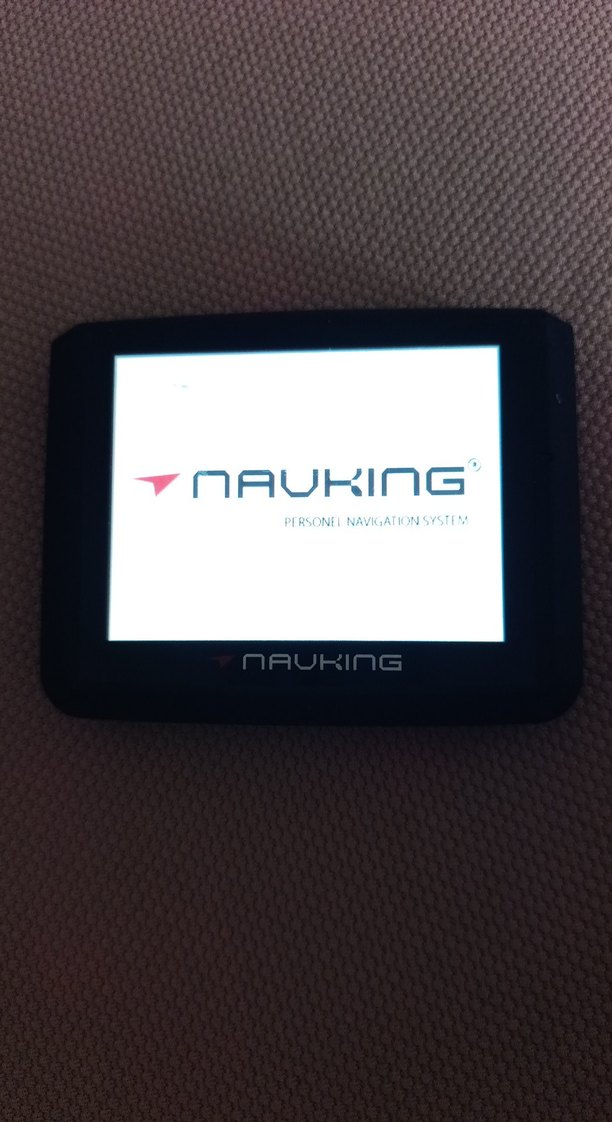 Siyah Navking tablet, kişisel navigasyon sistemi logosu ile net ekrana sahiptir. Çalışıyor şarj aleti yok