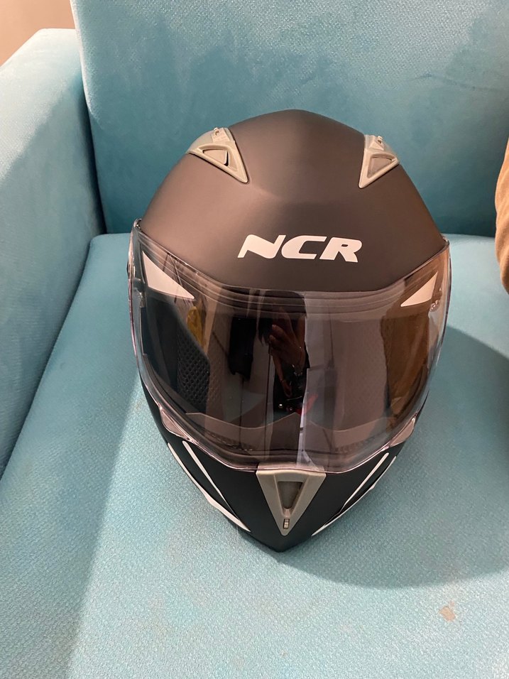 Siyah renkli, lastik malzemeden yapılmış, tokalı ve baskılı detaylara sahip NCR motosiklet kaskı. Şeffaf vizörlü, minimalist ve koyu tasarımlı. HERHANGİ BİR SORUNU YOK 2 GÜN KULLANILDI