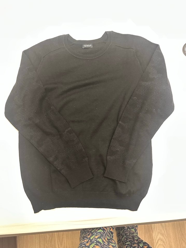 NETWORK SİYAH KAZAK , KOLLARI KAMUFLAJ DESENLİ.