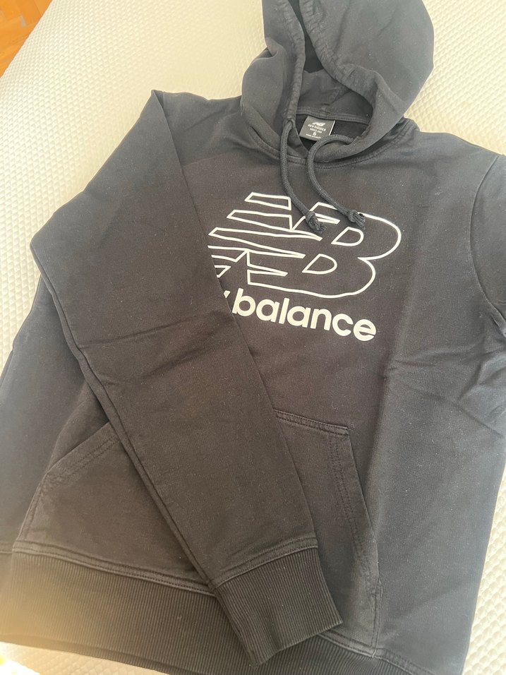 Yumuşak fleece kumaştan, fitted kesim siyah sweatshirt. Uzun kollu, bisiklet yaka ve ön kanguru cepli. New Balance baskılı, gündelik kullanım için uygun.