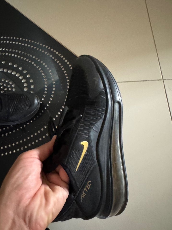 Siyah Nike Air Max 720 spor ayakkabılar, stiletto topuk ve cırt cırtlı bantlarla sokak modası ve spor fonksiyonunu birleştiriyor.