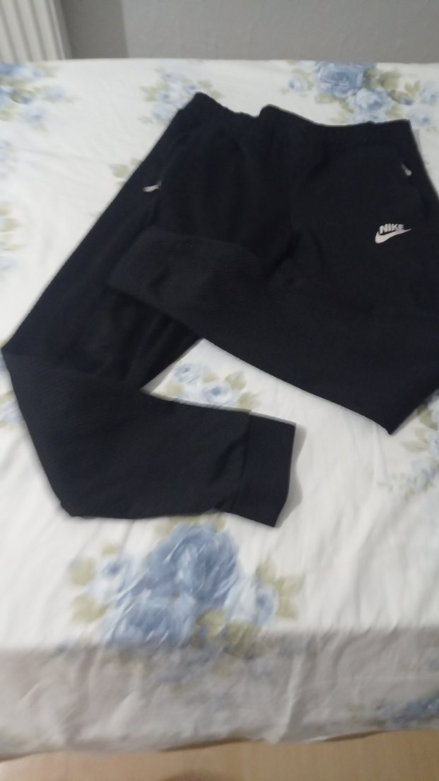 Siyah Nike kadın bol kesim eşofman, normal boy ve cırt cırt detaylıdır. Günlük kullanıma uygun, rahat ve şık bir tercihtir.